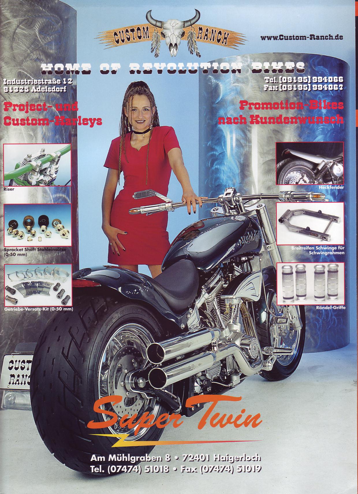 Reader's Ride "Silver Arrow" and full page Custom-Ranch advertising with AMM-IMMOGNITION powered bike.