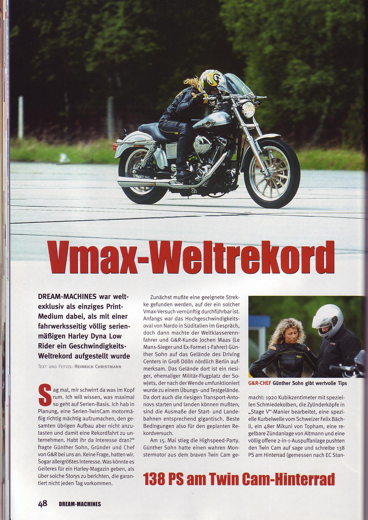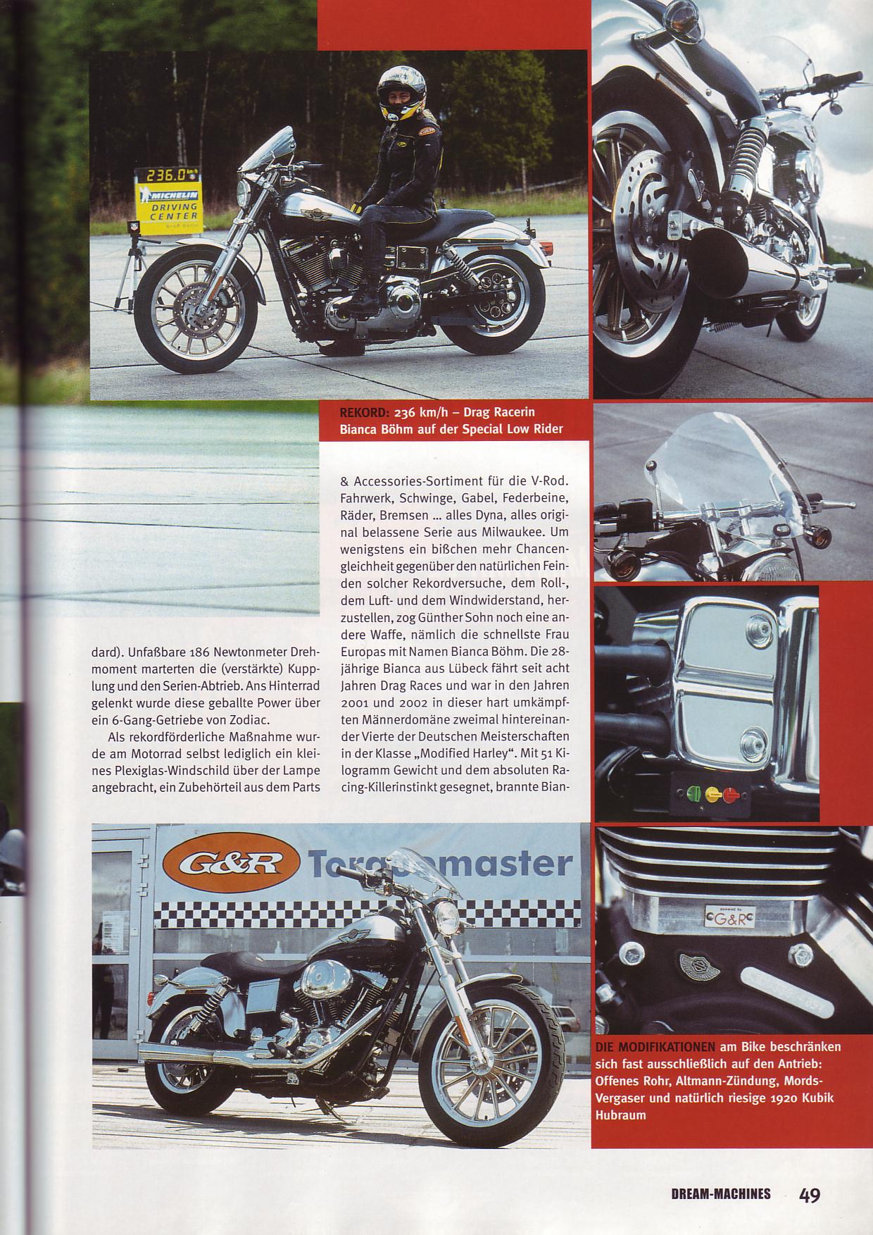 2006 2005 2004 2003 2002 2001 2000 1999 1998 1997 19962003 starts with something as fast as 236km/h. Famous german tuner Gunther Sohn of G&R and his furious Dyna TwinCam. Mikuni-48 carb, AMM-P3 ignition, 138hp (rear wheel), 186Nm. Racer is: Bianca Boehm.