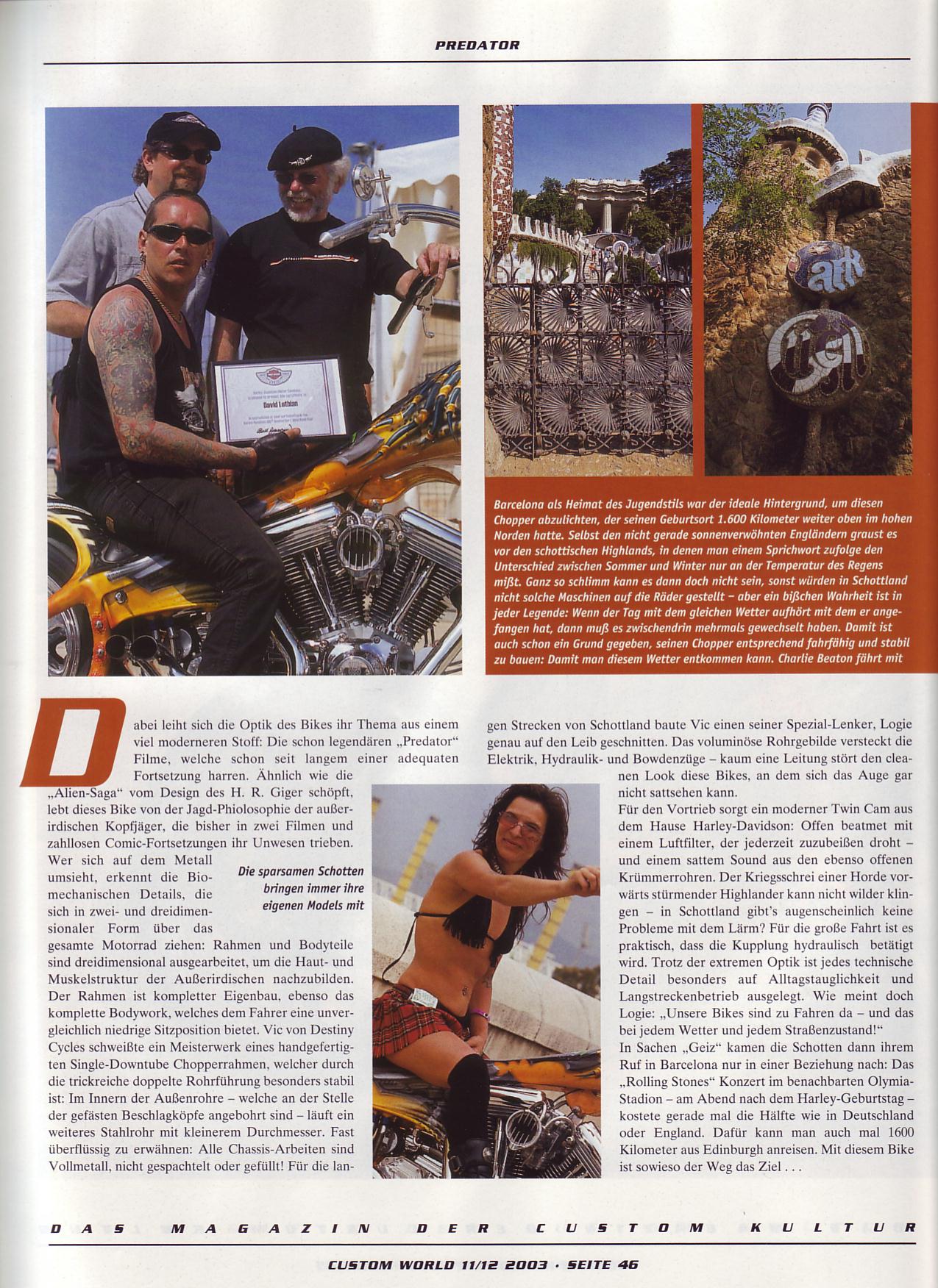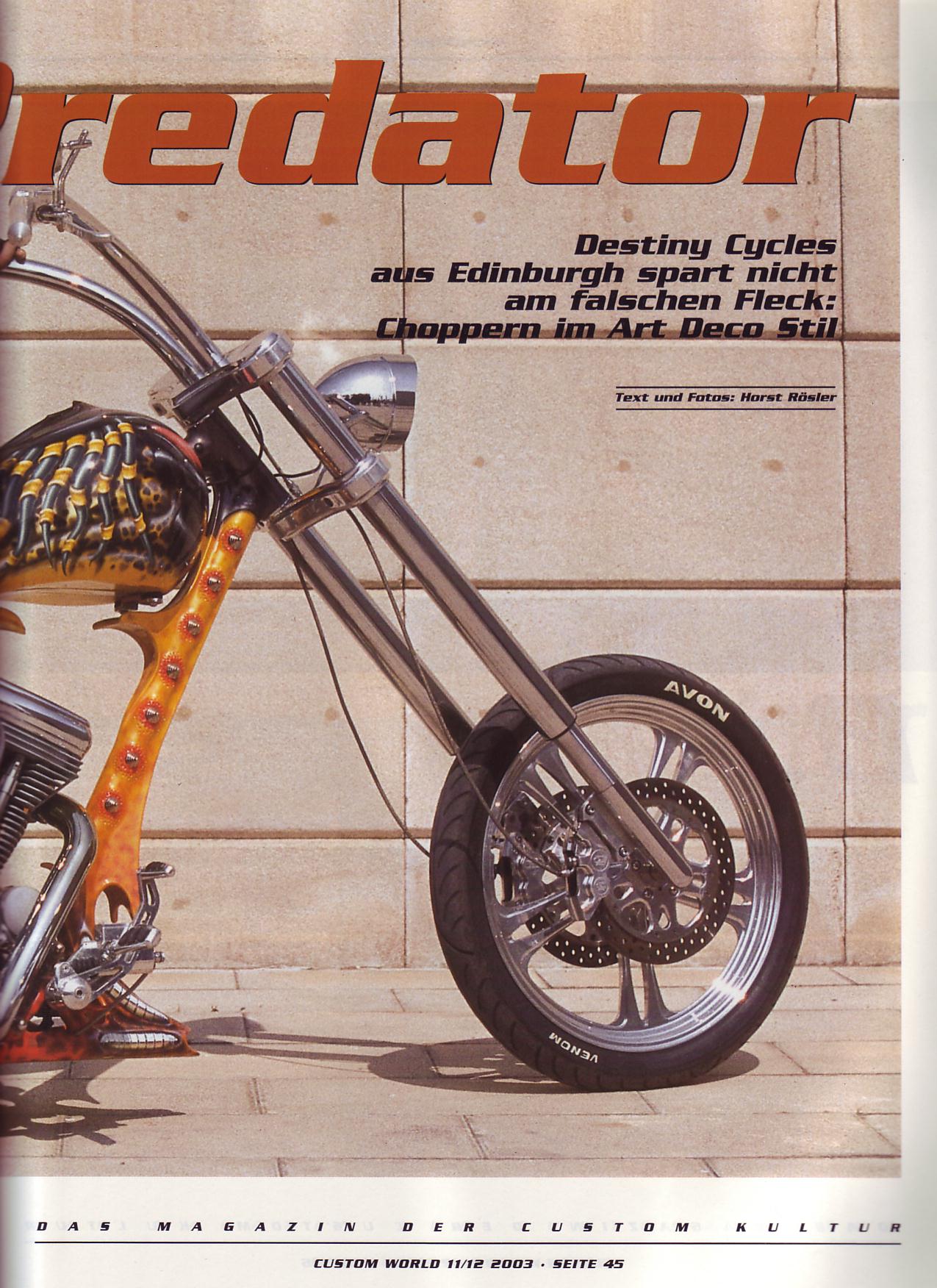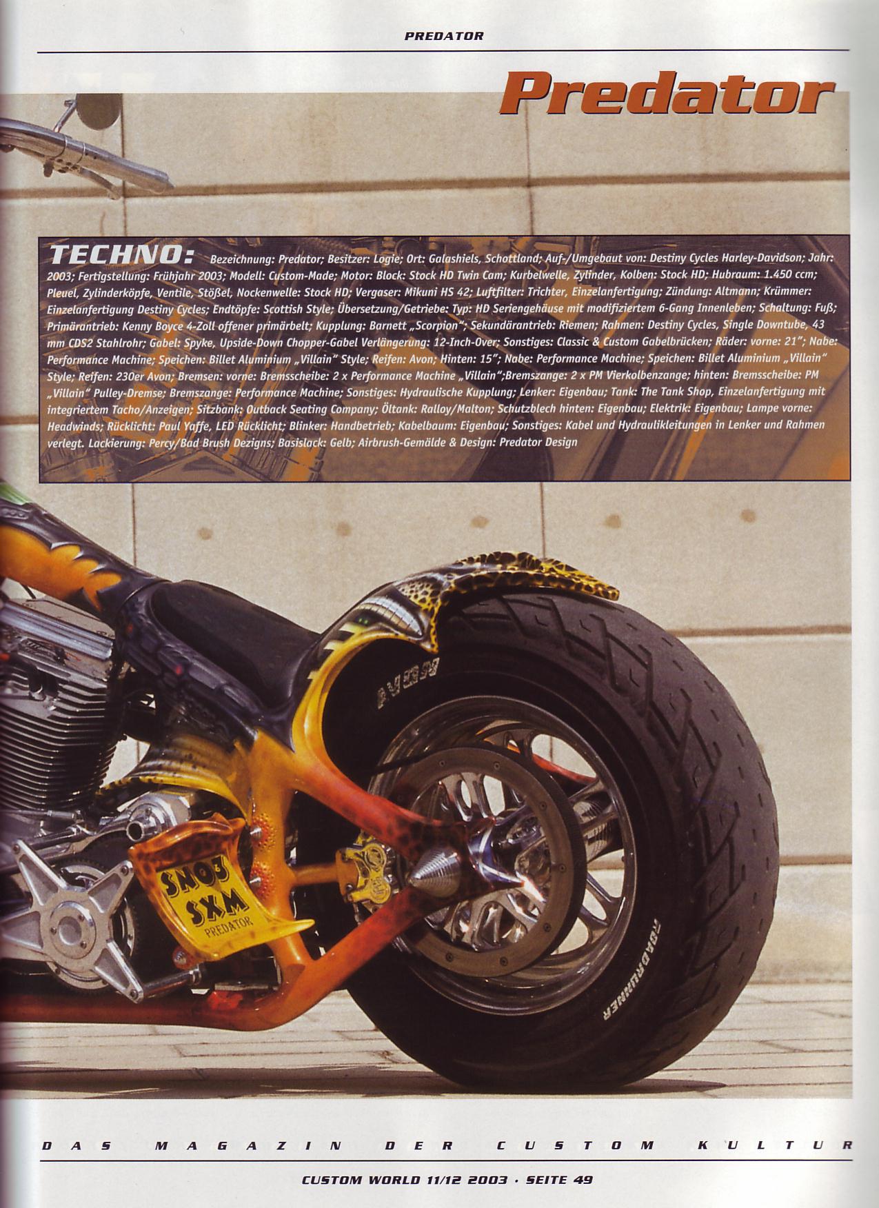 Award-winning "Predator Chopper" done by Destiny-Cycles, England. Willie G. Davidson in proximity of the good stuff. AMM-P3 ignition.