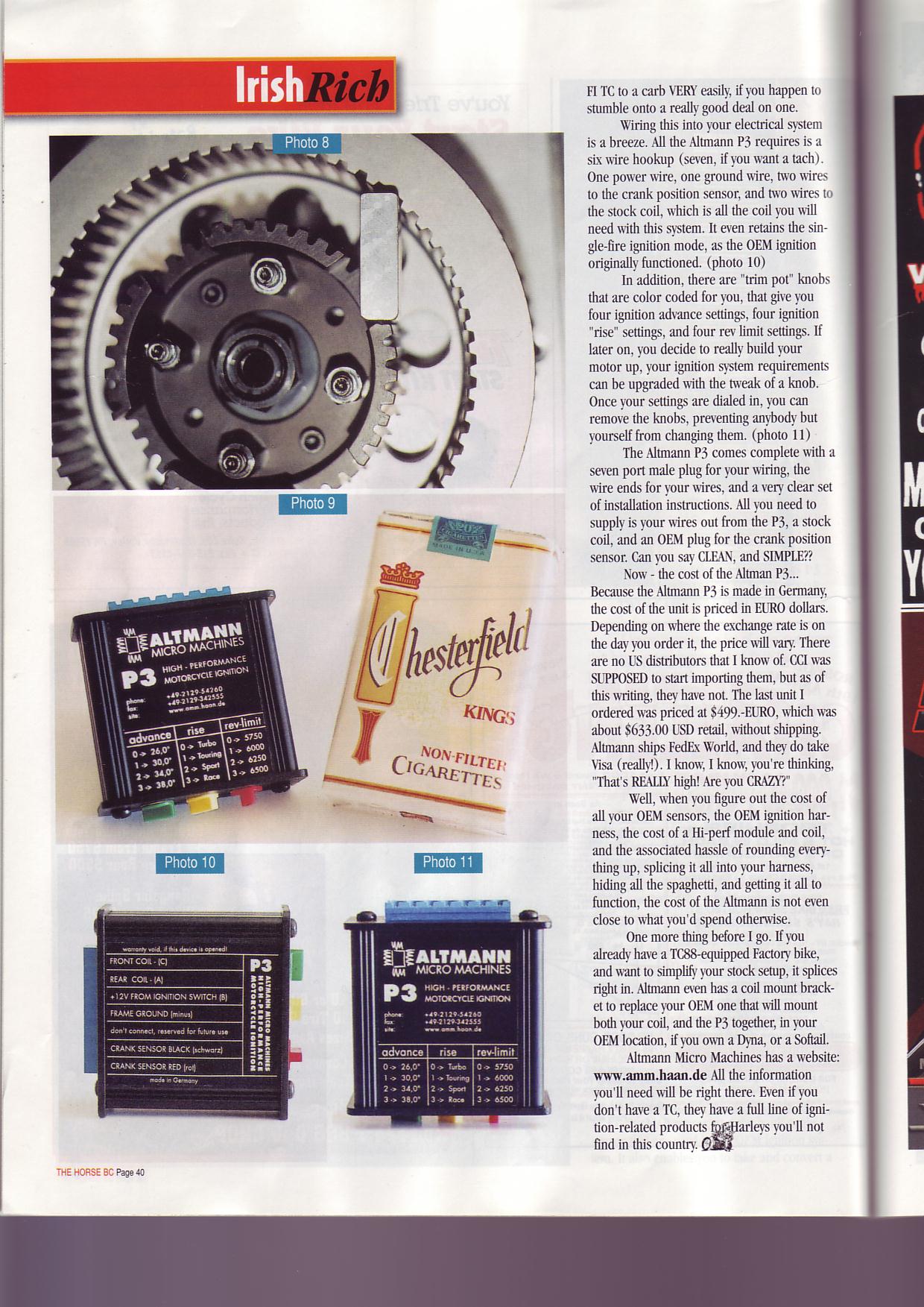 Feature in "The Horse". Irish Rich explains how to make a TwinCam chopper using the AMM-P3 ignition.