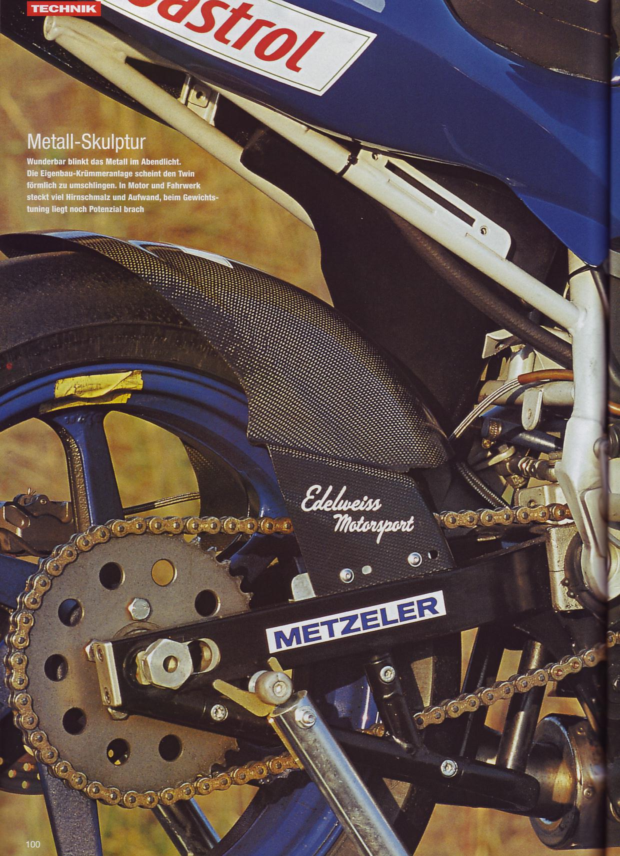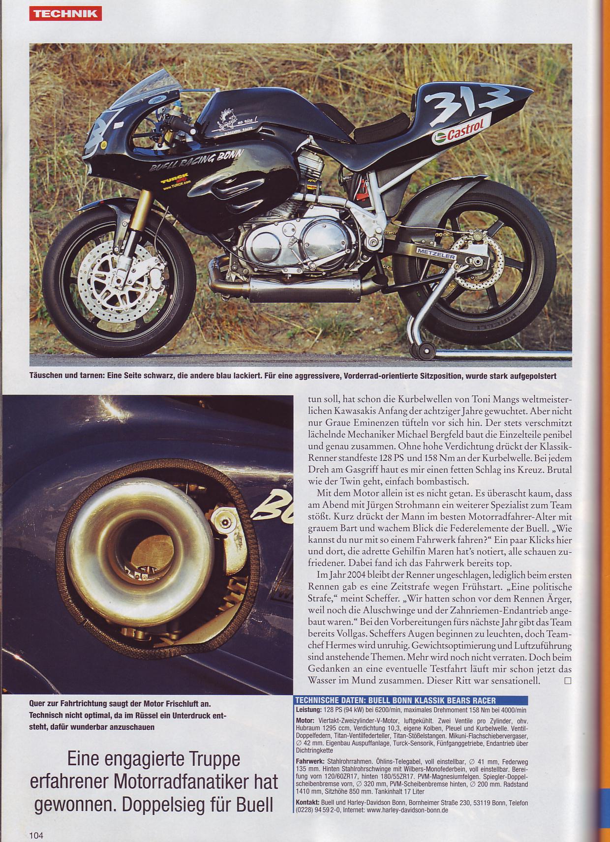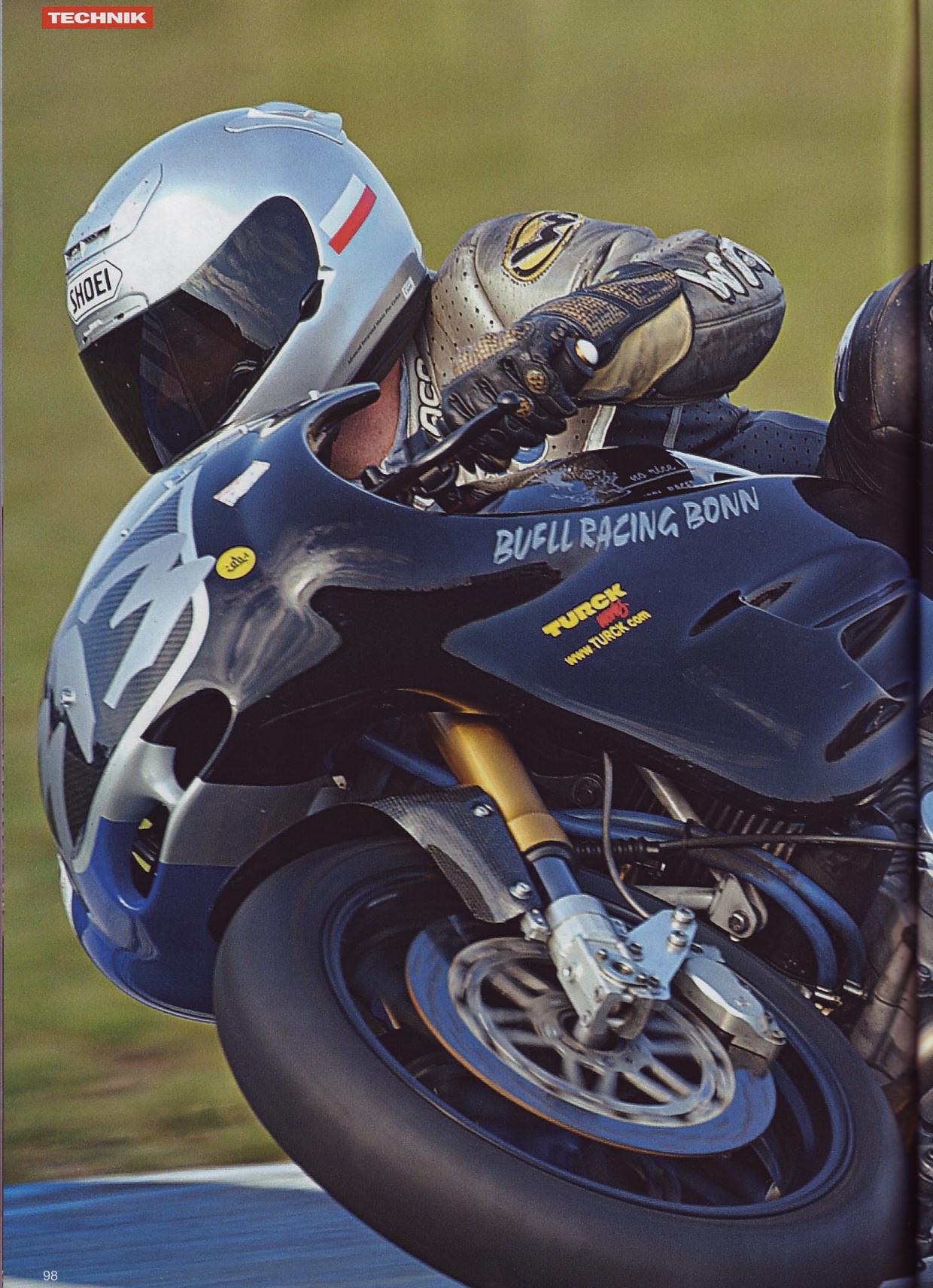 Driver Dirk Scheffer won every race in the whole season on this bike. Ducatis, BMWs, Guzzis, Yamahas were degraded to swallow dust and smoke of this 120 hp (rear wheel), 150Nm (rear wheel) classic Buell. The bike was assembled by Michael of HD-BUELL Bonn, who told me, that the engine not even gets hot during the race.